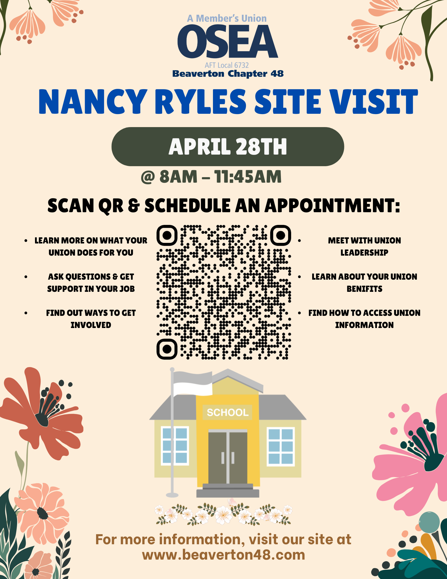 Nancy Ryles Site Visit Tuesday, April 28, 2026 8:00 AM 11:45 AM Google Calendar ICS Schedule an Appointment